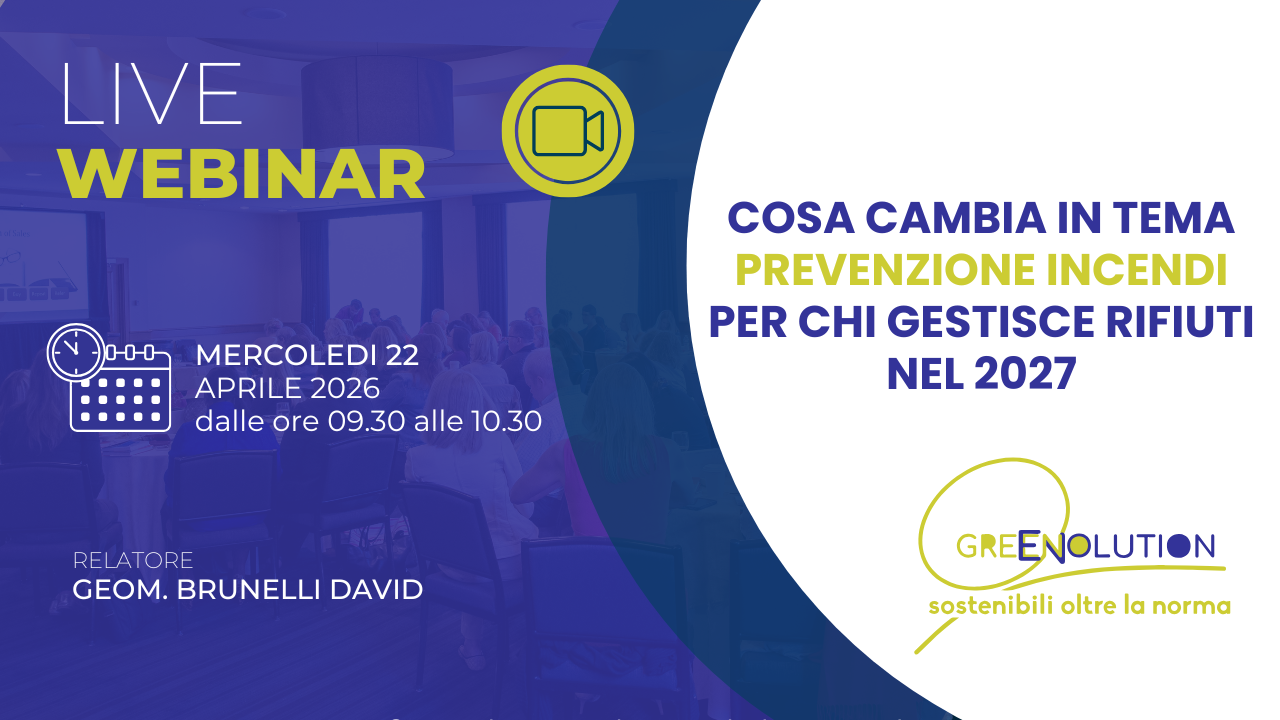 Green Evolution Srl SB propone un webinar dedicato ai nuovi adempimenti in materia di prevenzione incendi per impianti di stoccaggio e trattamento rifiuti, in vista delle scadenze previste per il 2027.